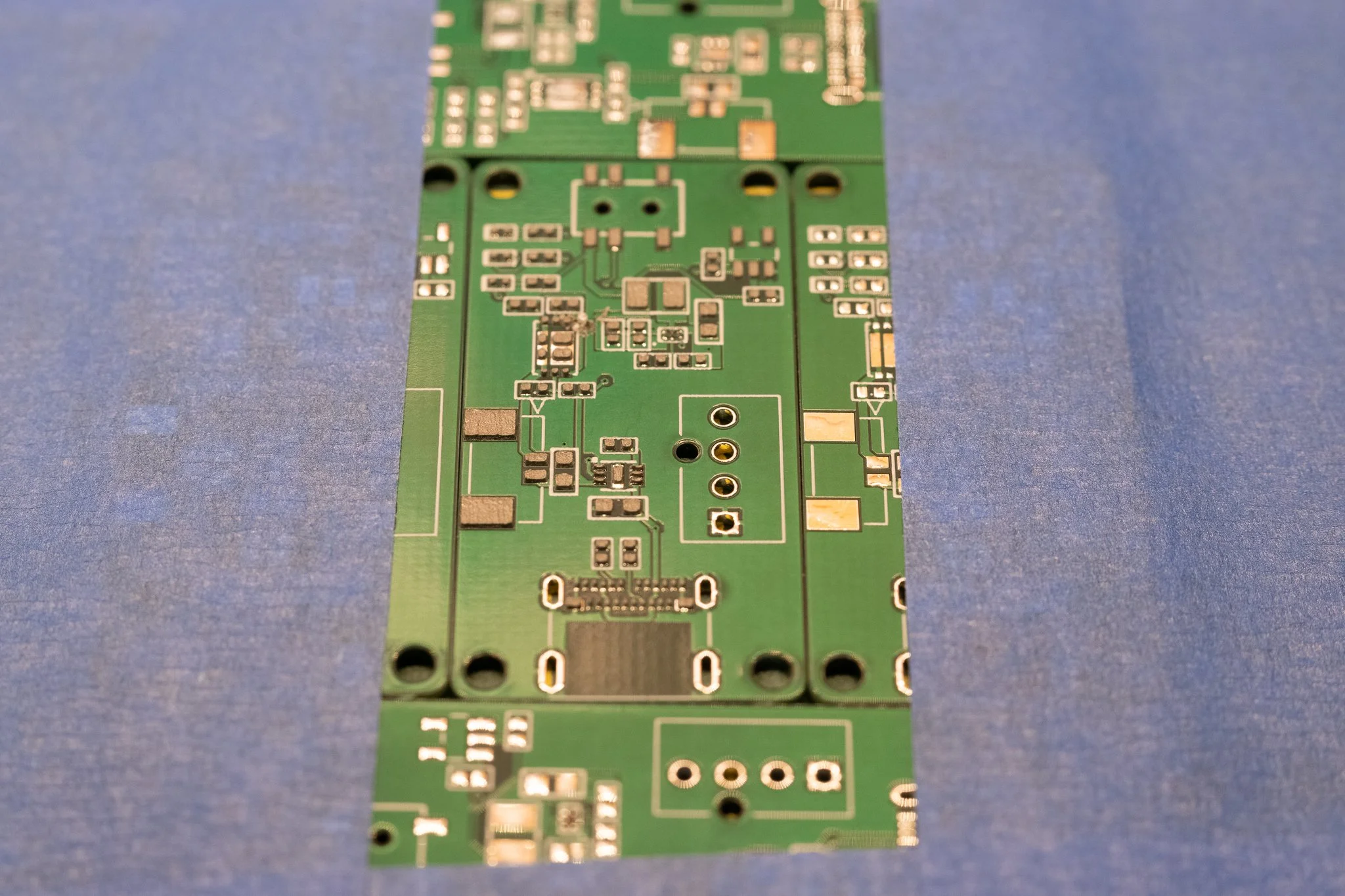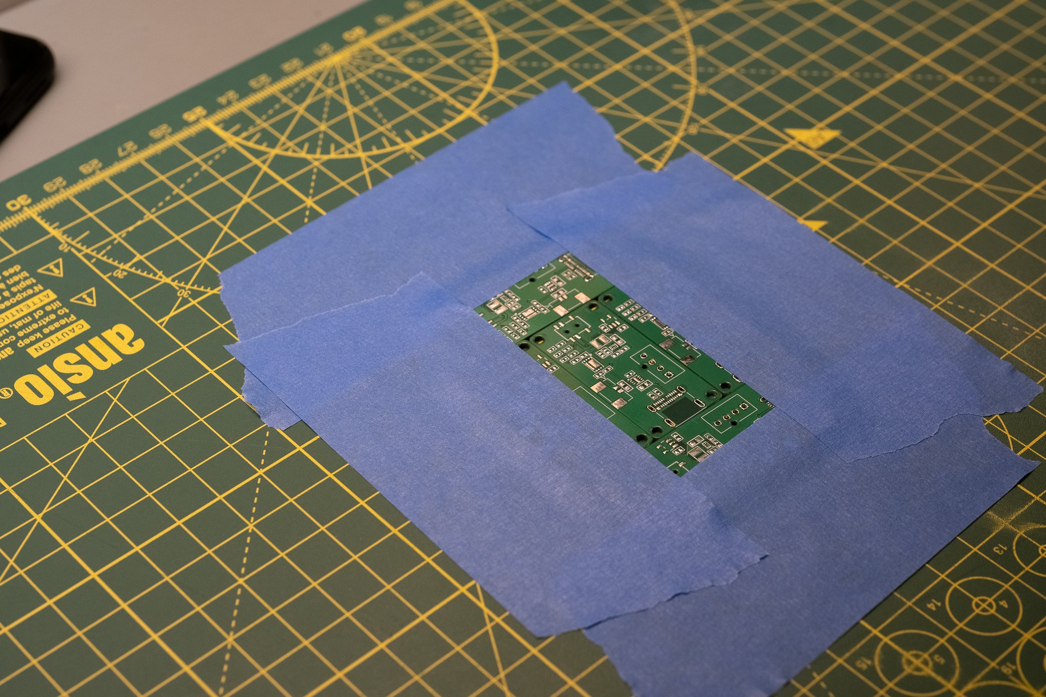 The PCBs and stencil were ordered from a manufacturer in China for a very low cost. Once they arrived, the first step in assembly was to use the stencil to apply solder paste. I used the extra PCBs and tape to make a jig to apply the solder.